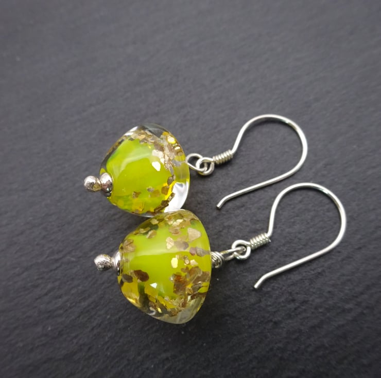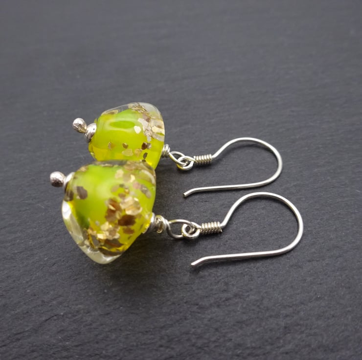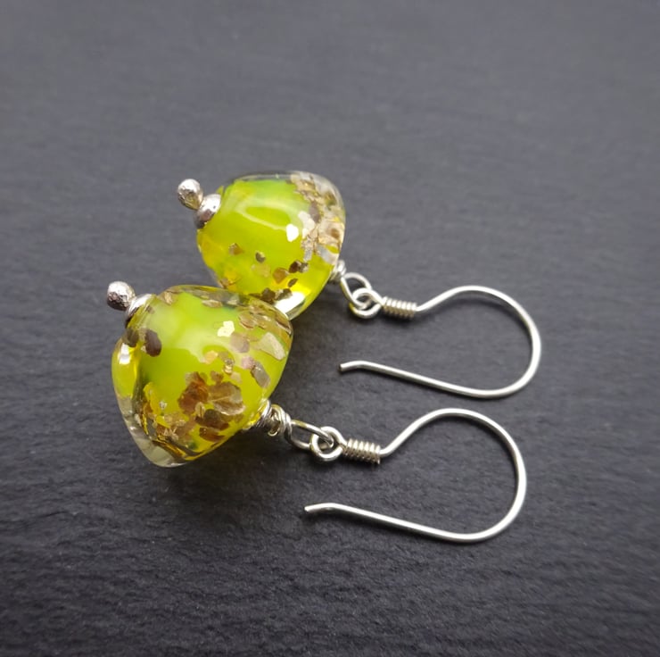 The beads have been handmade by me using yellow glass and features gold glitter.