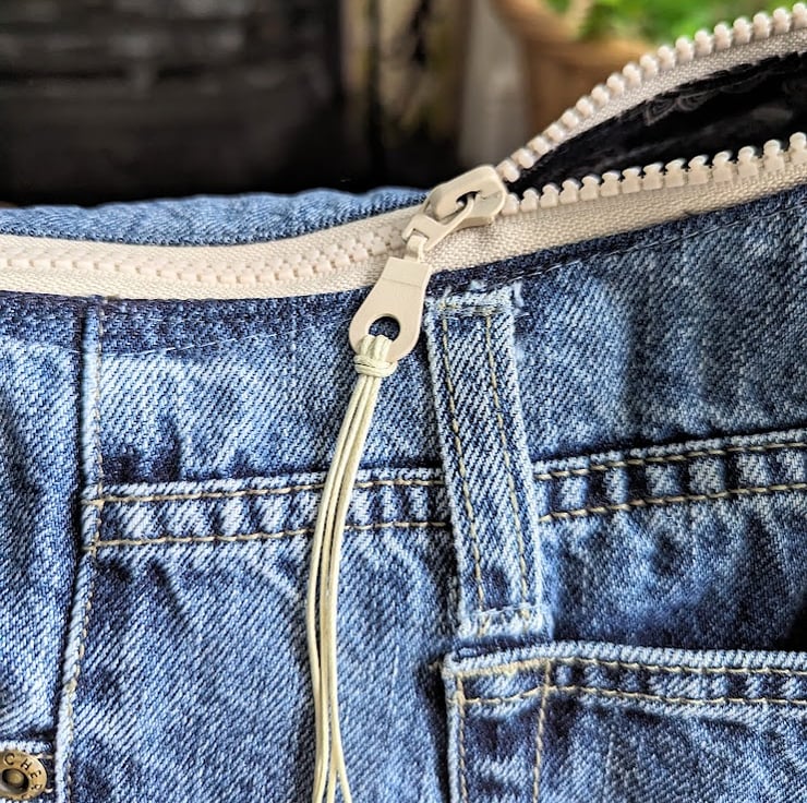 A chunky zip with waxed cotton cord zip pull secures the bag.