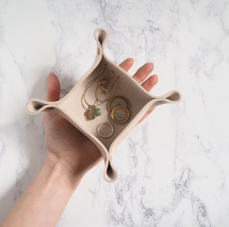 Our ever popular square coin tray has a mini me! Perfect for small bedside tables to keep your daily jewellery safe and surfaces scratch free.