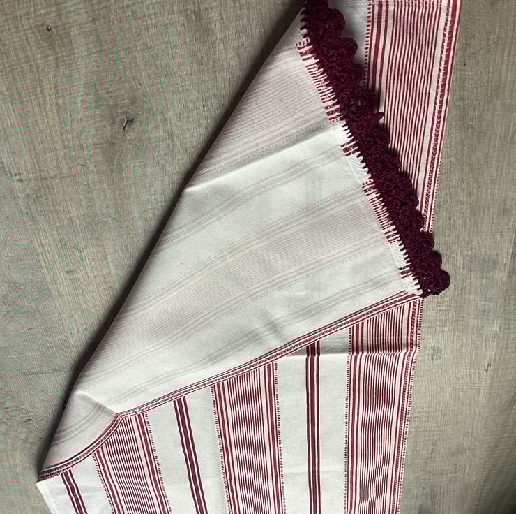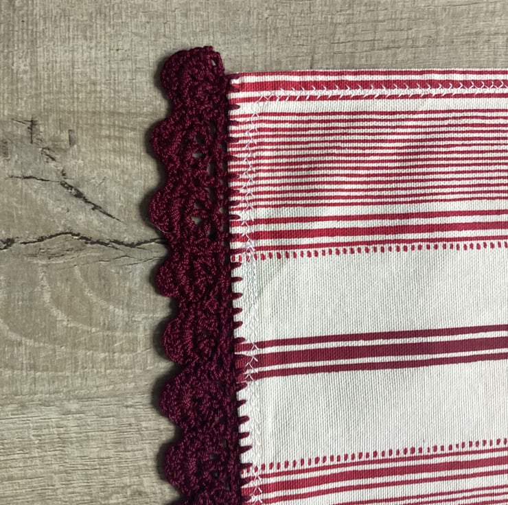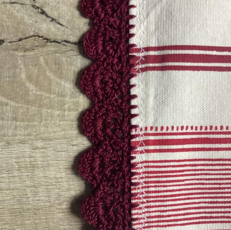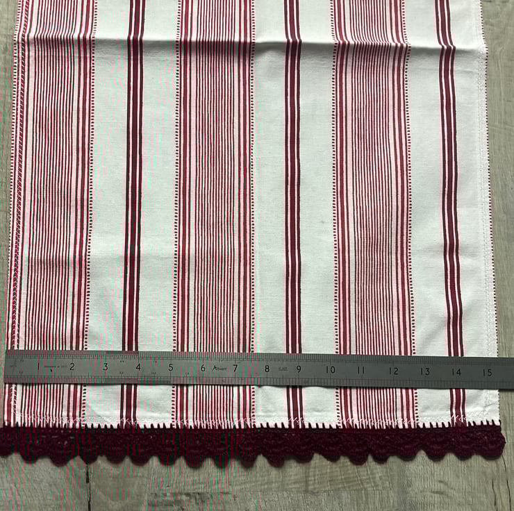 To make it I’ve used Laura Ashley cotton blend fabric and added decorative hand crochet borders ( I’ve used cotton yarn) to compliment fabric pattern .