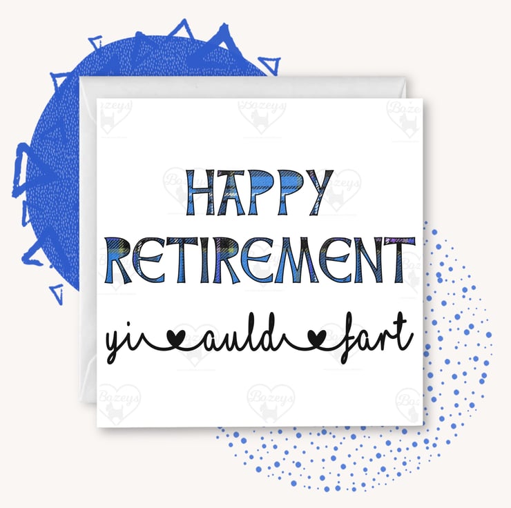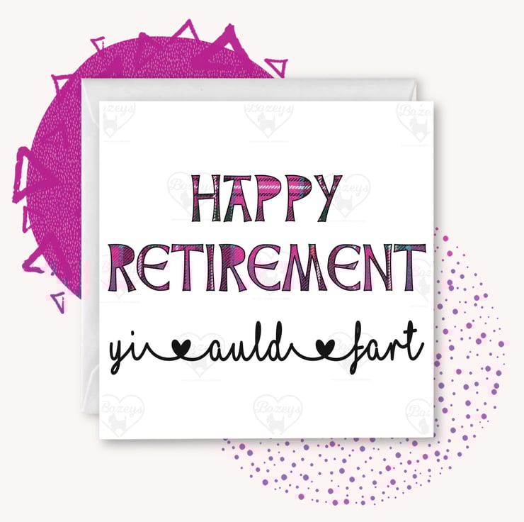 Happy Retirement yi auld fart! These are great cards to raise a titter or two - Happy Retirement with a delicately written cheeky tagline, available in pink or blue.
