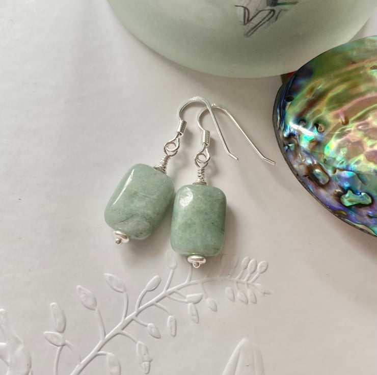 The Jadeite beads measure approximately 1.5cm x 1cm and the total length of each earring is approximately 3.4cm.