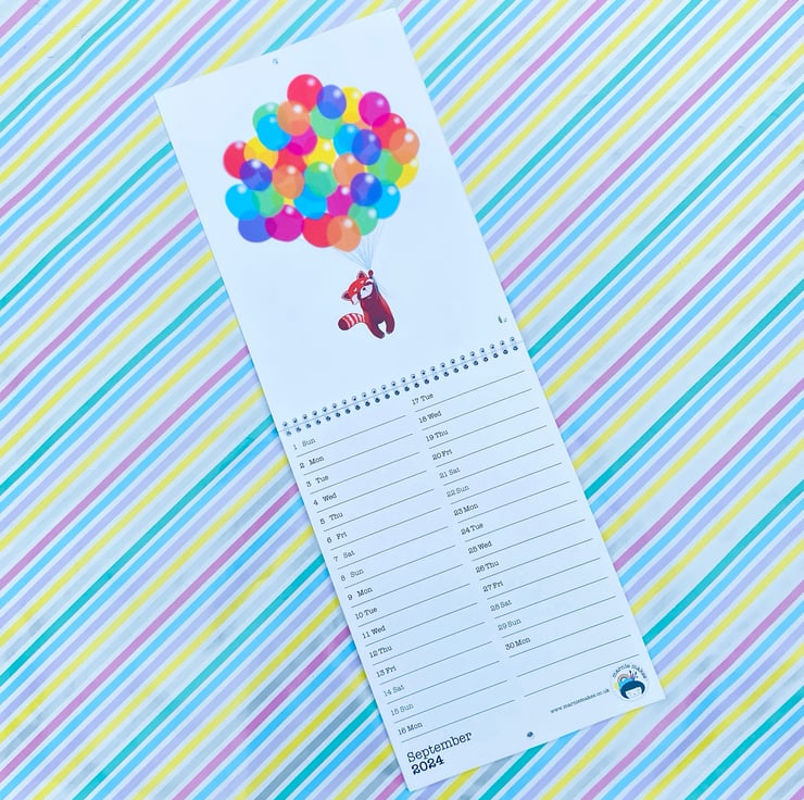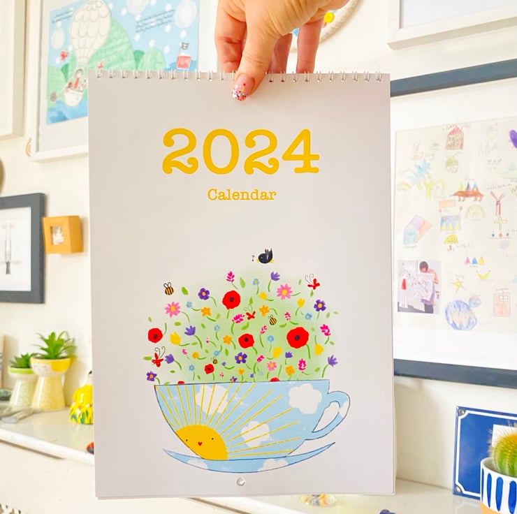 I know, it hardly seems believable, but it's time to start thinking about 2024, and the Marnie Makes calendar is the perfect way to ease gently into the new year to come ! A double A4 calendar (opens lengthways as in the product pics) are printed on 210gsm silk stock card and consists of 13 pages; 12 pages with full colour to both sides, and 1 page of full colour to one side and black print on the back. Each month has a beautiful illustration to make you smile ( and when you're done with the calendar you can frame the illustration), has one row per day for notes, is wire bound and has a hole punched for ease of hanging. It will be cello-packed in either a board-backed envelope or postage box depending on quantities and posted Royal Mail 2nd class.