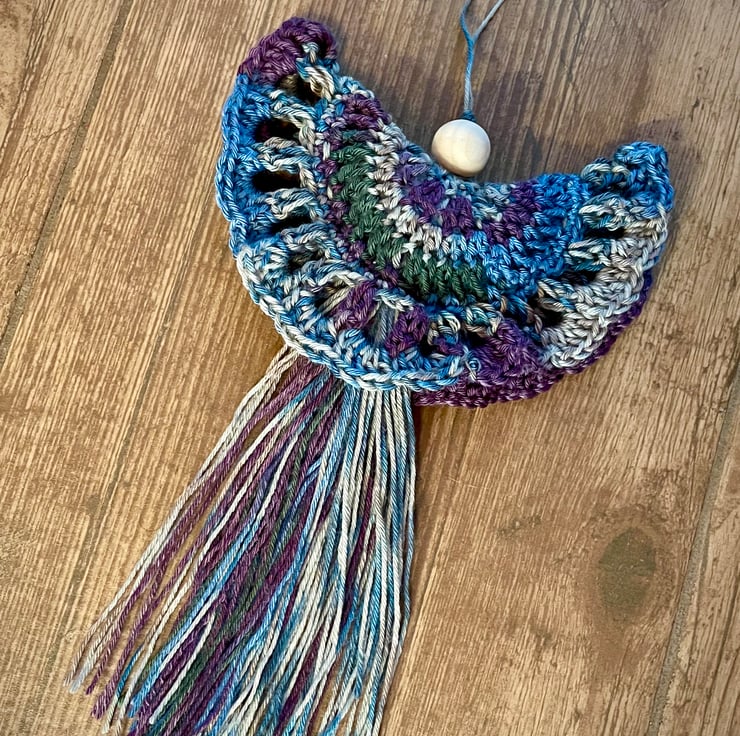 This multi-coloured angel looks great hanging on a wall or free hanging in that special place in your home like a Guardian Angel, looking over you or a loved one.