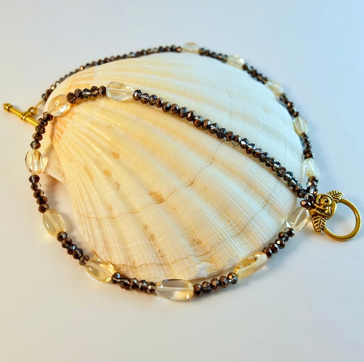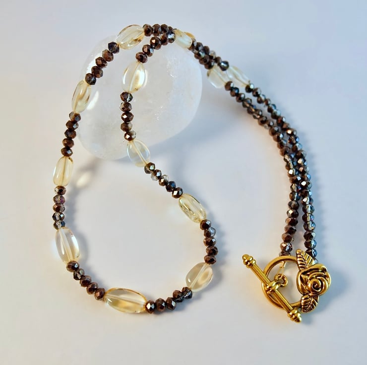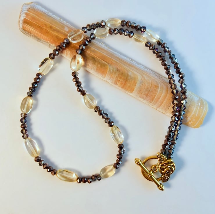 Citrine Nugget Necklace With Faceted Glass - Handmade In Devon