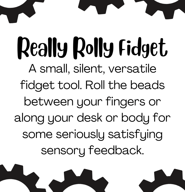 These fidgets are 'really rolly'! Roll the beads between your fingers or along your desk or body for some seriously satisfying sensory feedback. Discrete, silent and versatile; they consist of 5 beads that roll freely within a crochet outer oval (note: not recommended for under 3s). See it in action here: https://tinyurl.com/3v6rrmsx