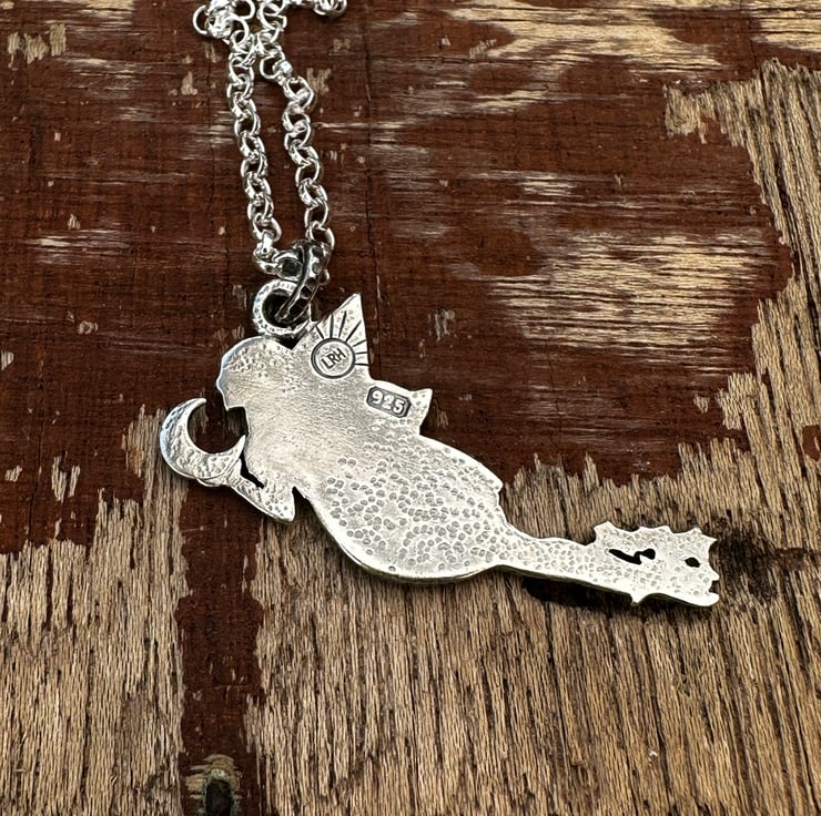 Made using traditional jewellery making techniques. Carefully pierced out with my jewellers saw, soldered, hand engraved and metal stamped to add detail. Oxidised finish.
