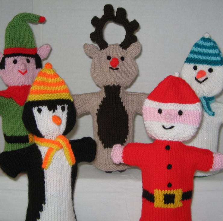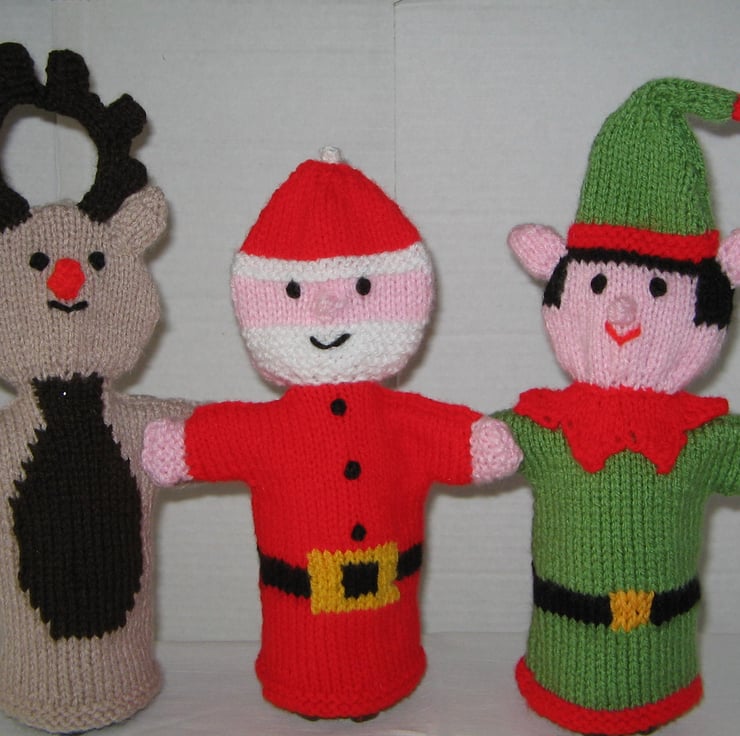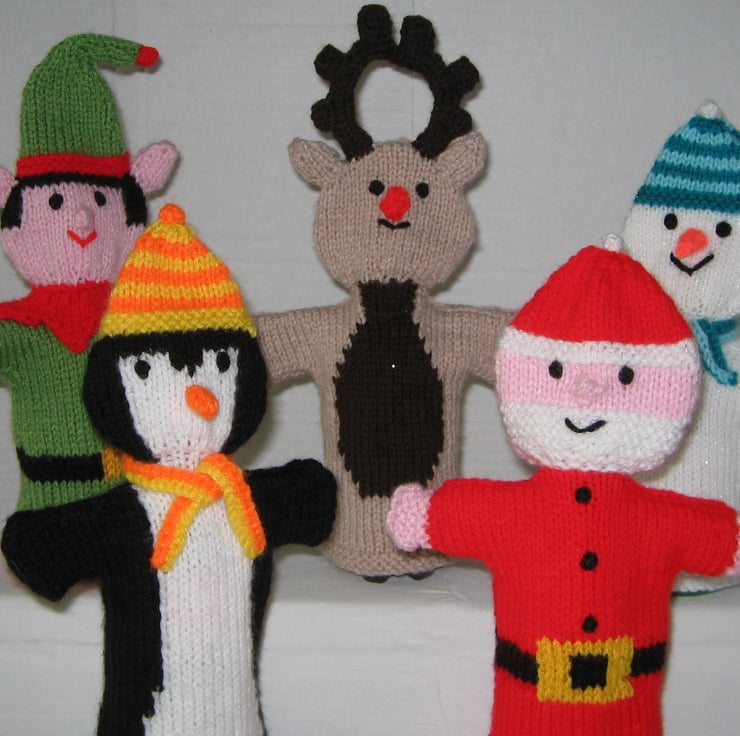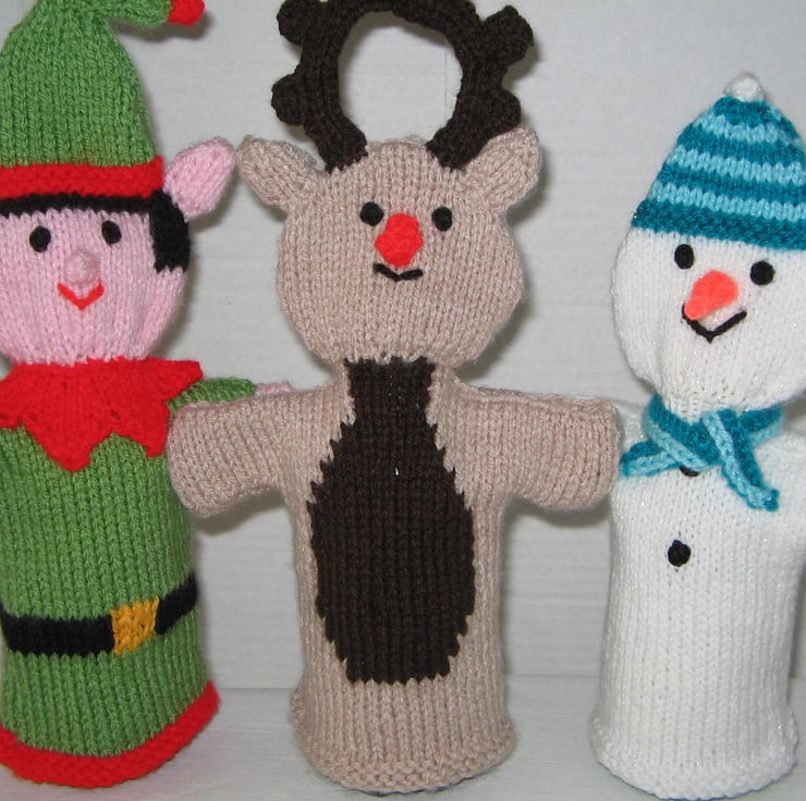 These hand puppets are hand knitted by myself with no sharp bits to hurt little fingers and no filling to pull out. You can choose any three puppets of any that are shown and also mix and match with my other listings of glove puppets. Just pick any three and let me know which you want.