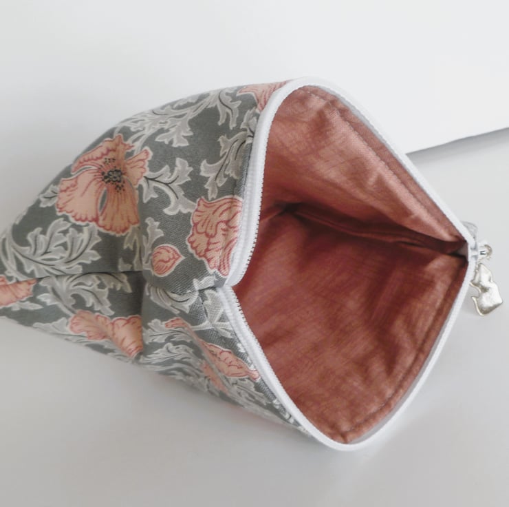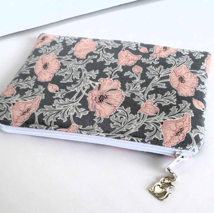 Made from 100% cotton fabric, the pouch is fully lined with cotton lining and has a metal & nylon zip. There is also a layer of interfacing to increase stability. It is finished off with a zip pull, which can be removed if required.