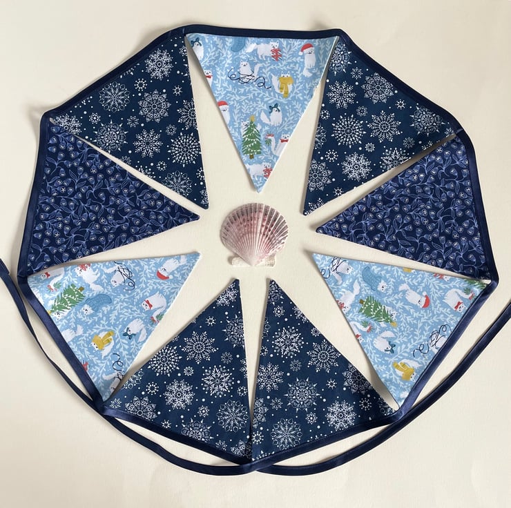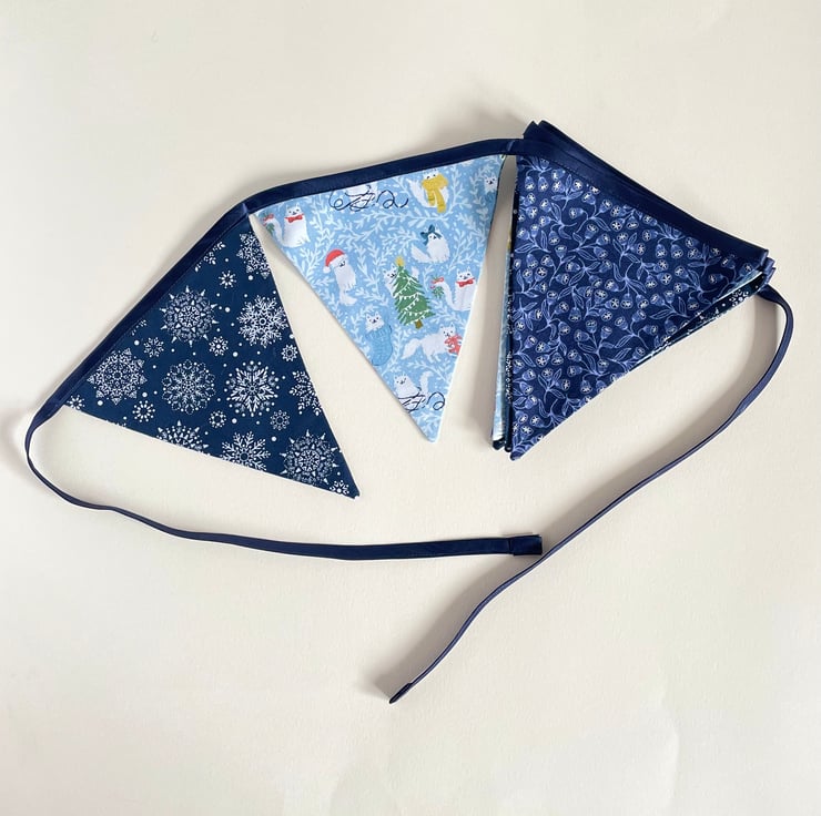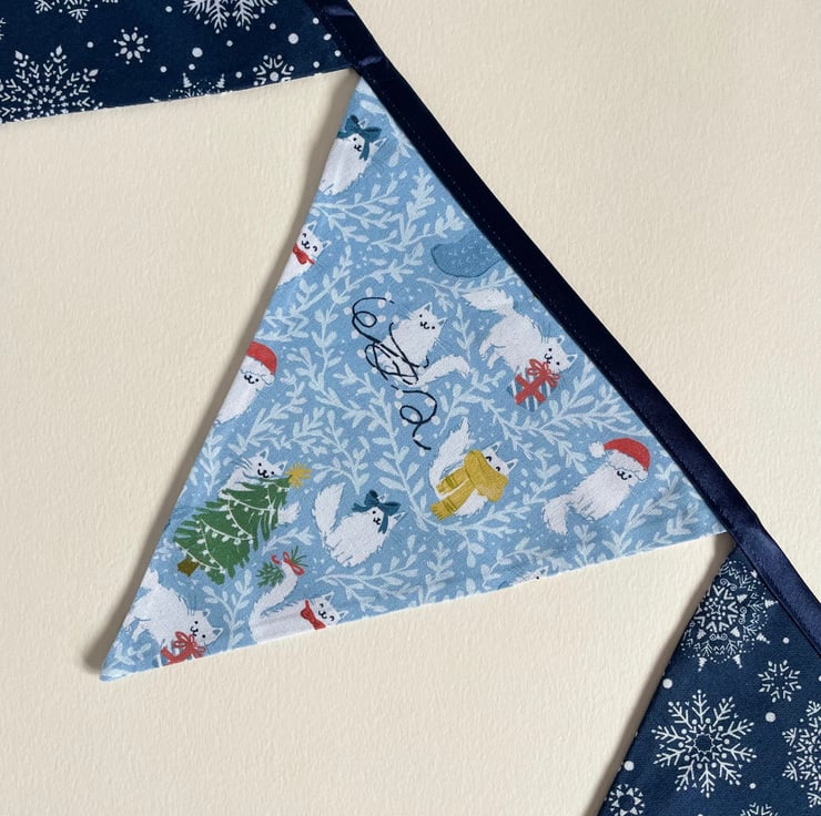 Calling all the cat lovers! Large bunting with a very cute cat design. 243 cm long from one side to another. 9 double sided panels. Reusable and washable.