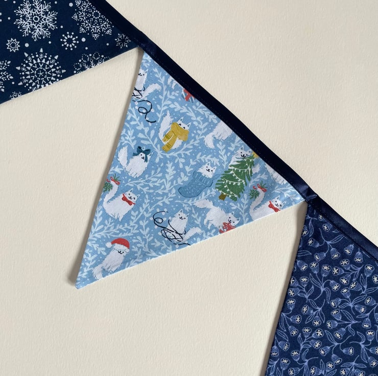 Large bunting - Kitties celebrating Christmas  - reversible