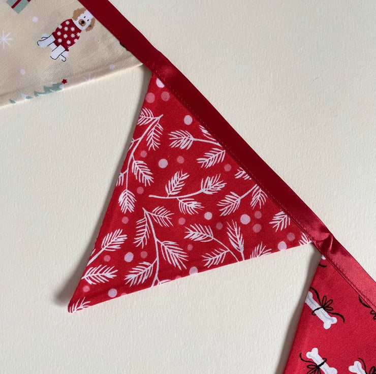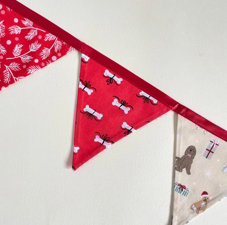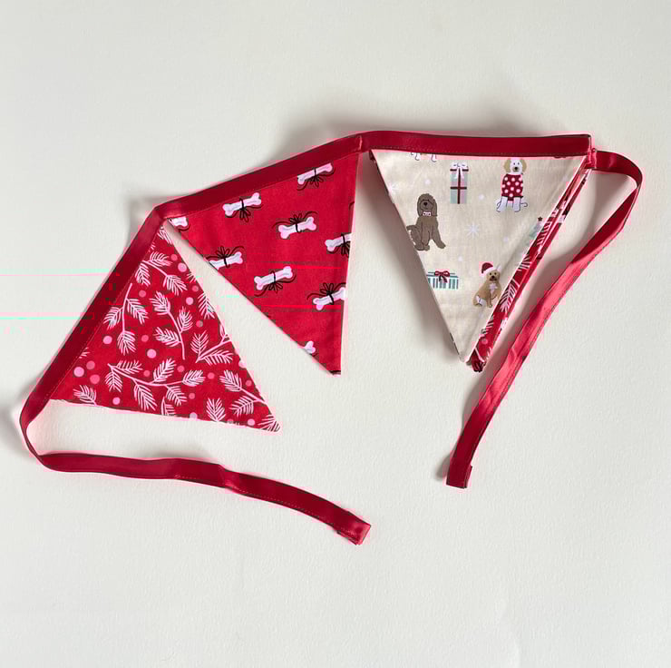 Cute bunting with Christmas dogs. Perfect for any animal lover. 188 cm long from one end to the other. 9 double sided panels.