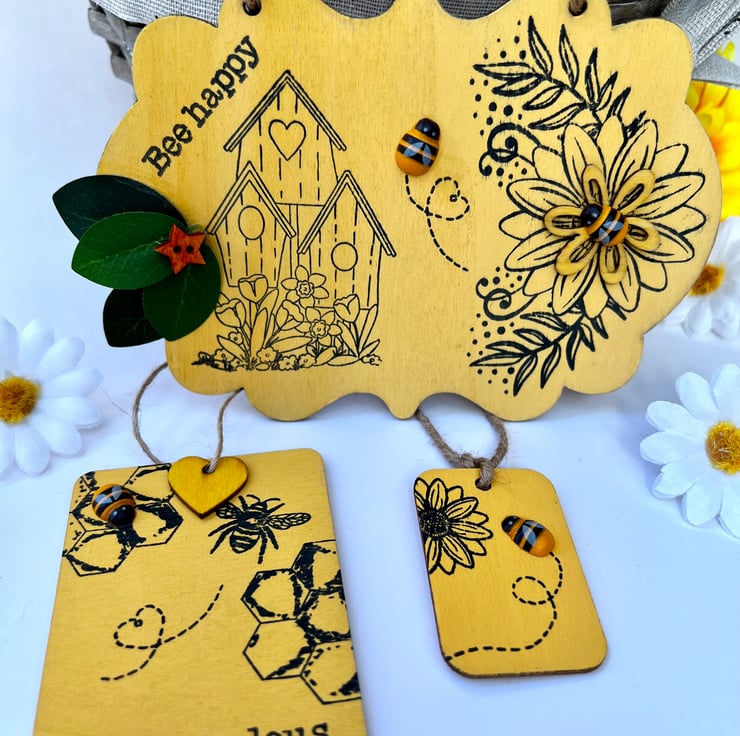 These make a lovely gift or home decoration for any bee fan. The smaller wooden decoration is perfect to use as a gift tag first, before it can become a keepsake and decoration around the home.