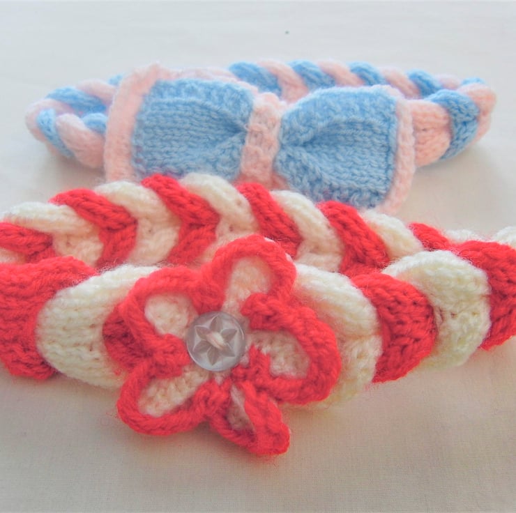 Plaited Headband with Bow or Flower Decoration, Plaited Ear Muff, Knitted Girl Headband, Hand Knitted, Photo Shoot Prop, New Baby Gift, Baby Shower Gift, Baby Accessories