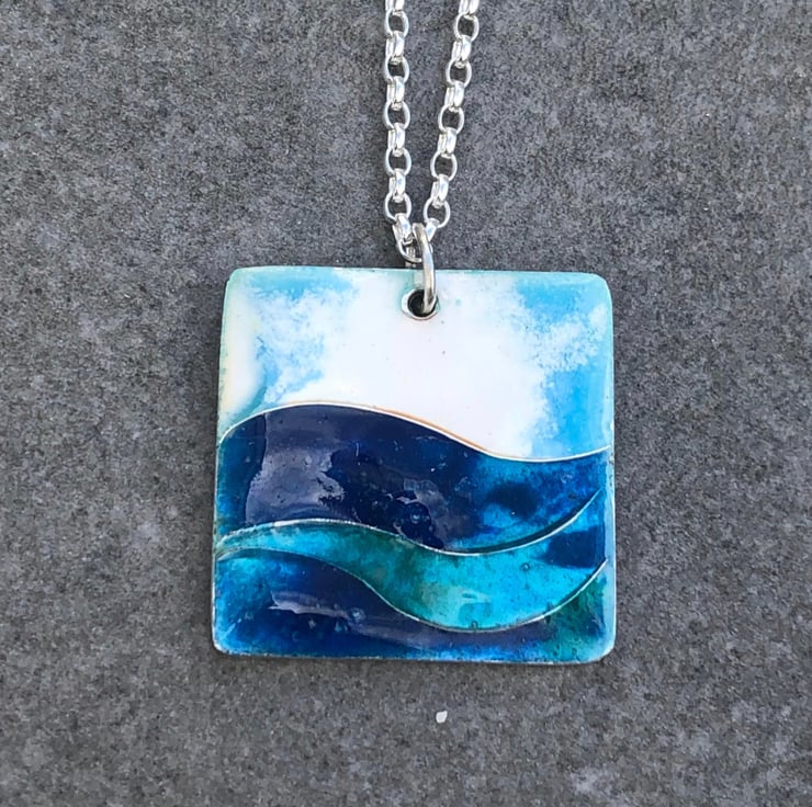 Enamel Pendant, sea pendant, ocean pendant, waves necklace, waves, enamel ,