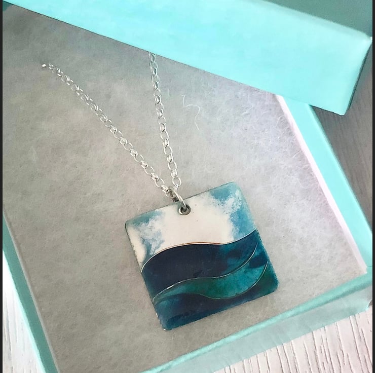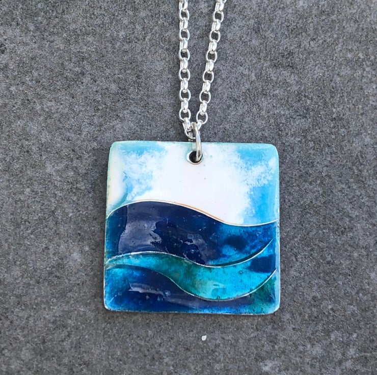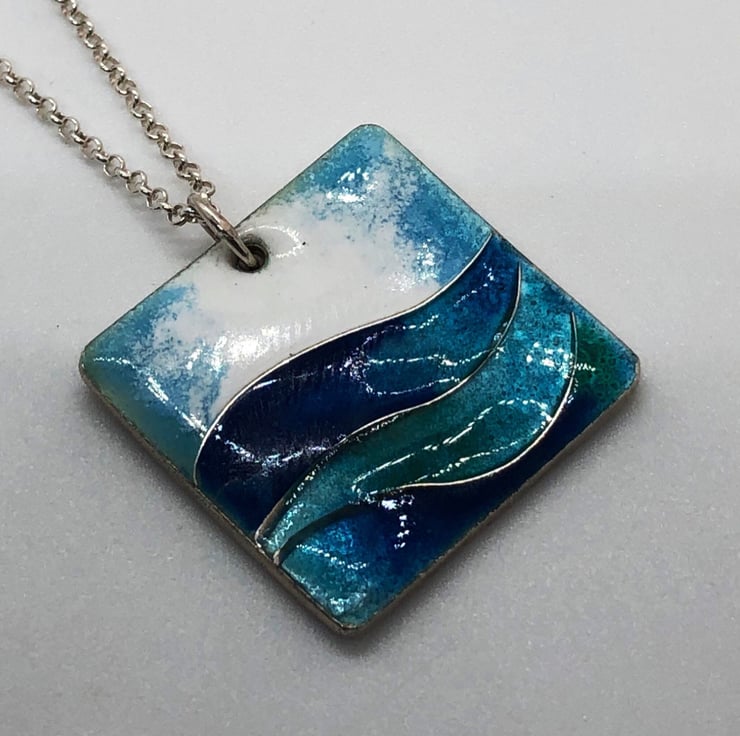 Enamel Pendant, sea pendant, ocean pendant, waves necklace, waves, enamel ,