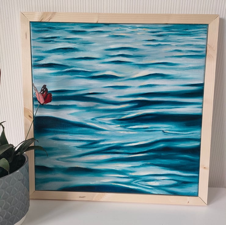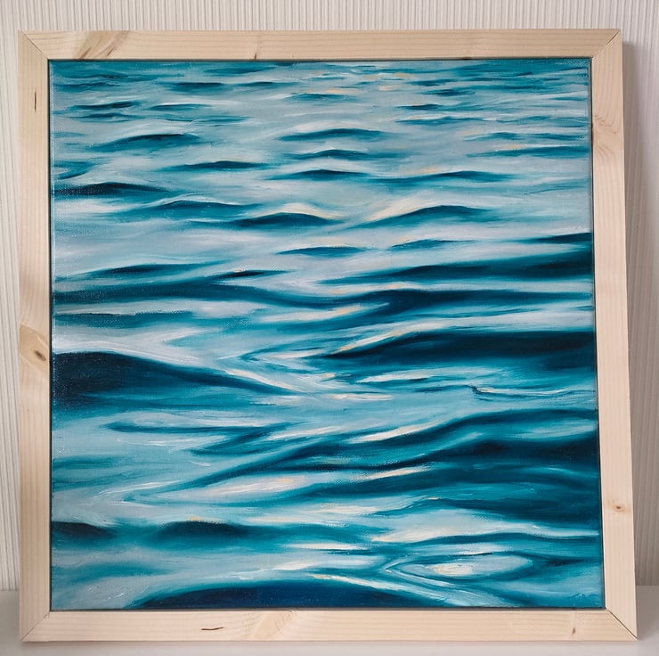 Framed oil painting on a shallow canvas, 44cm square. The frame is 2cm deep