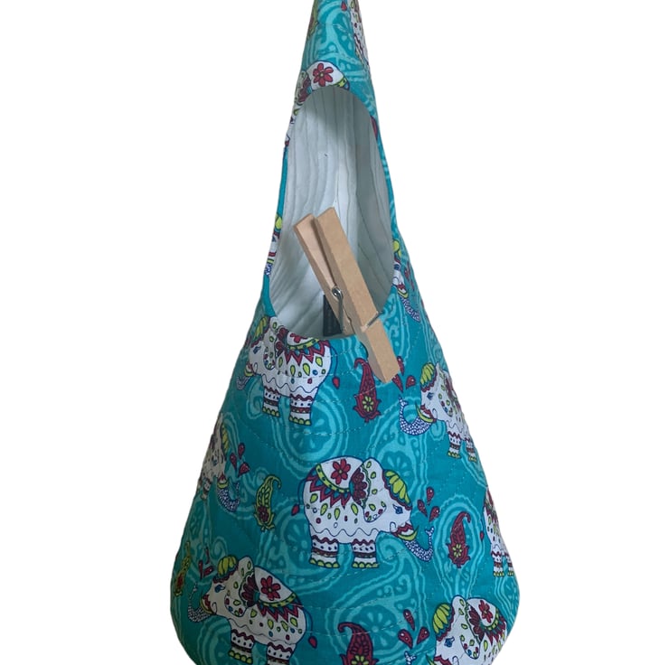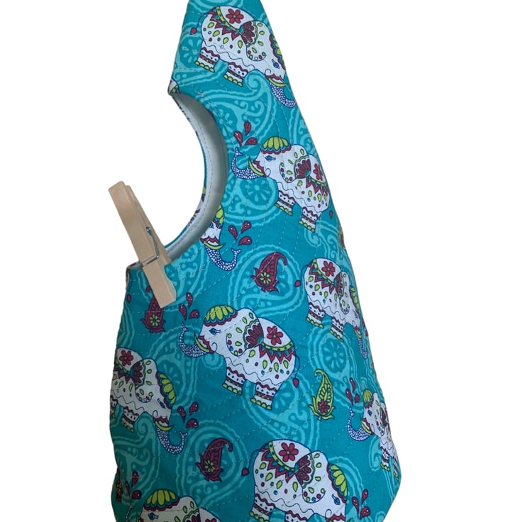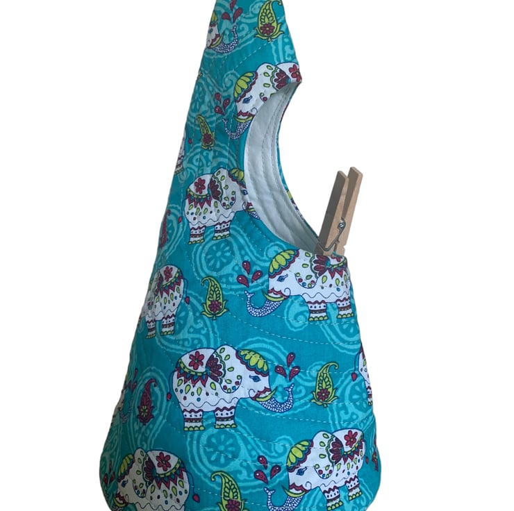 Quilted Handmade Peg Bag in turquoise featuring Indian style paisley Elephants