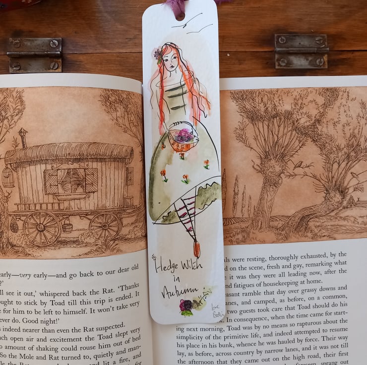These are all individual. Hand drawn in Indian ink and painted with watercolours. So mini works of art. A simple gift to pop in a card or write a message on the back. With silk trim at the top. I also do personslised ones if you wish to have a name on them . X a gift for a nature and book lover x small gift to sit along side your favourite book. Comes thoughtfully wrapped.