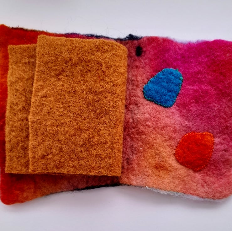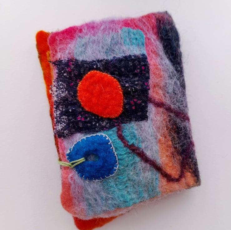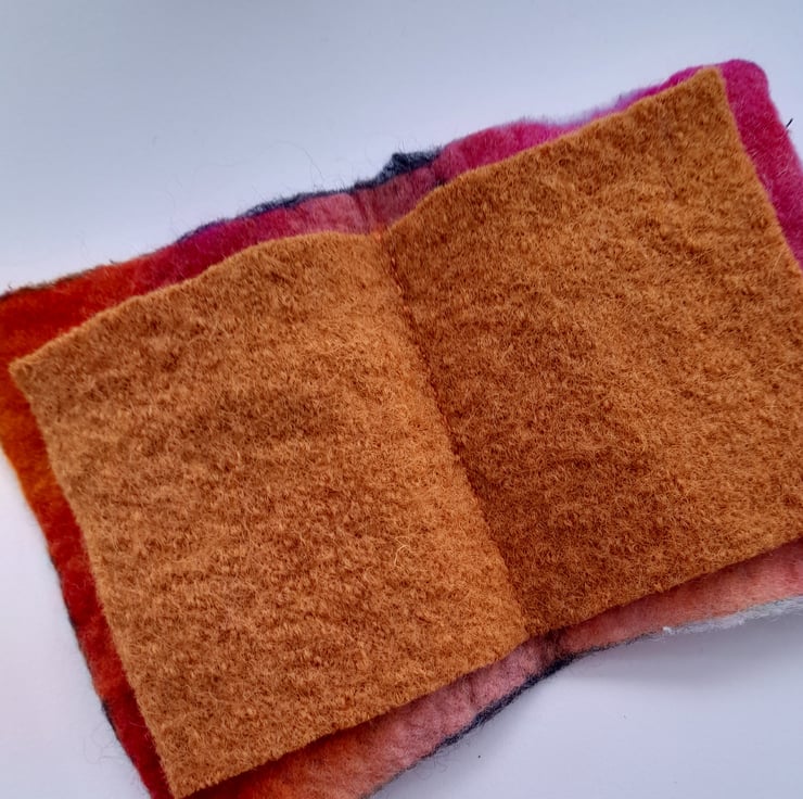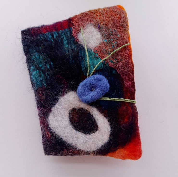 This listing is for one medium book and is empty for you to put your own needles and ,or pins in . It is made from the Nuno Felting technique with applique and felt button and has wool felt inserts.