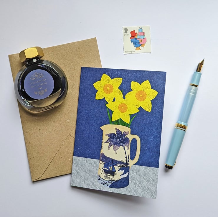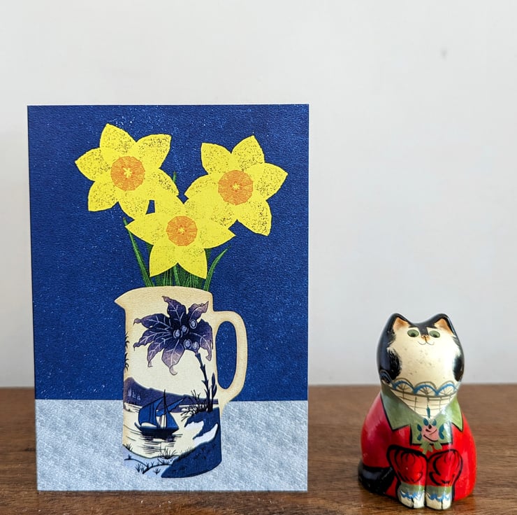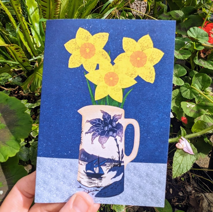 My digital painting of beautiful bright yellow daffodils has been professionally printed onto A6-size 350GSM recycled card.
