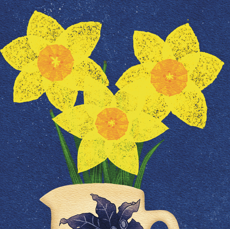 Daffodils in a Delftware Jug