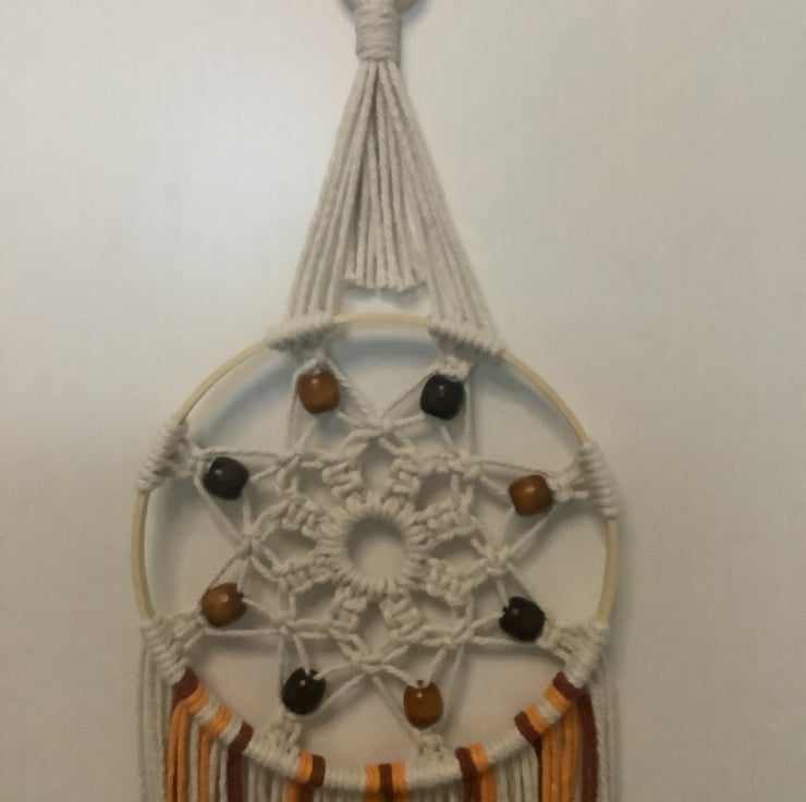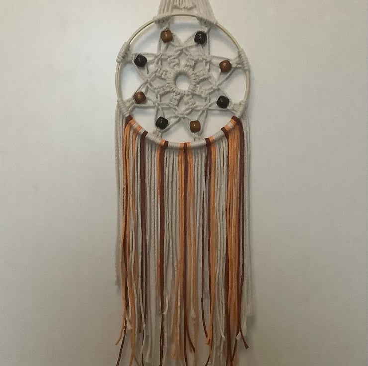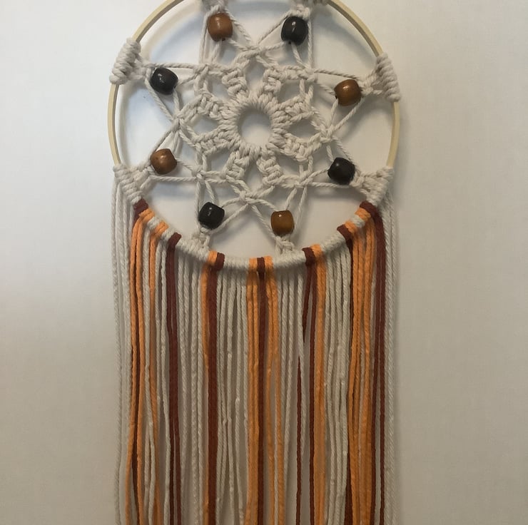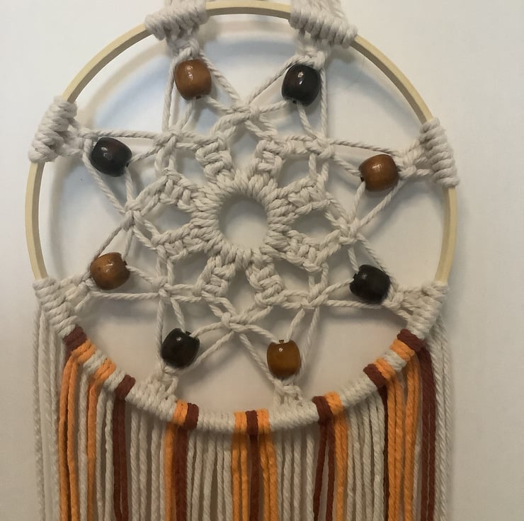 This gorgeous Autumn coloured macrame dreamcatcher is a one-off. It is unique.