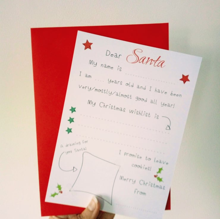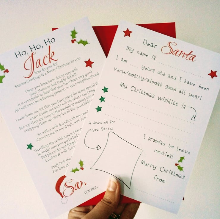 I've created a letter that your little one can write on, add drawings, stickers etc and then pop into its very own bright red envelope for you to arrange delivery to Santa. Then there's a reply from Santa addressed to your child!