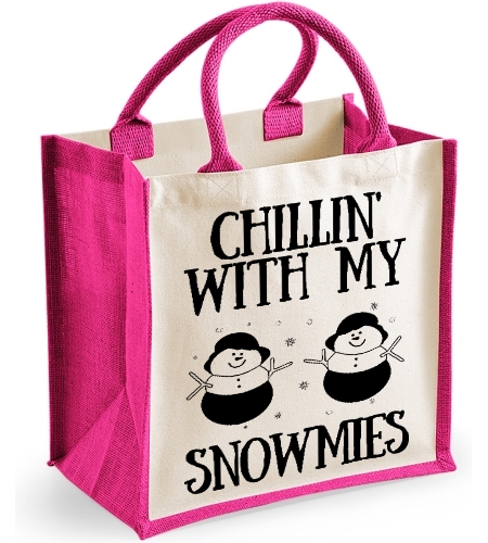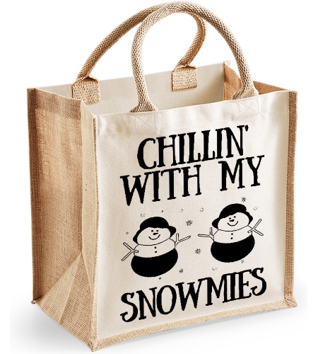 Chillin With My Snowmies - Christmas Midi Jute Bag Christmas Gift