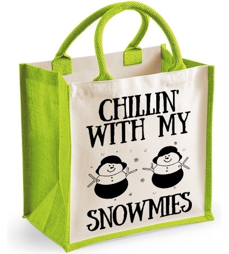 Chillin With My Snowmies -  Christmas Midi Jute Bag Christmas Gift