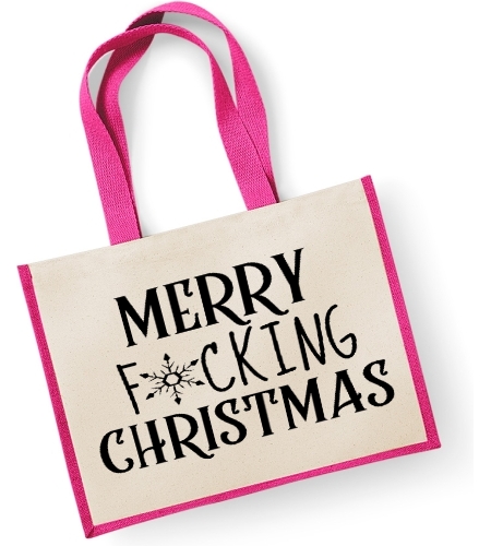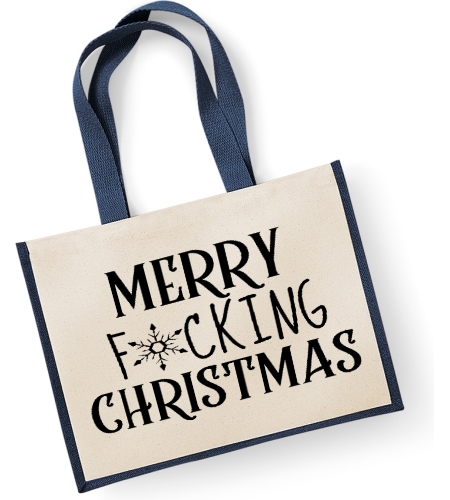 Merry F Christmas -    Large Christmas Jute Shopper Bag