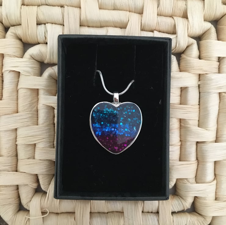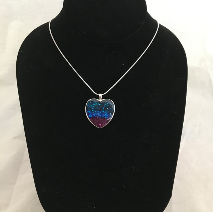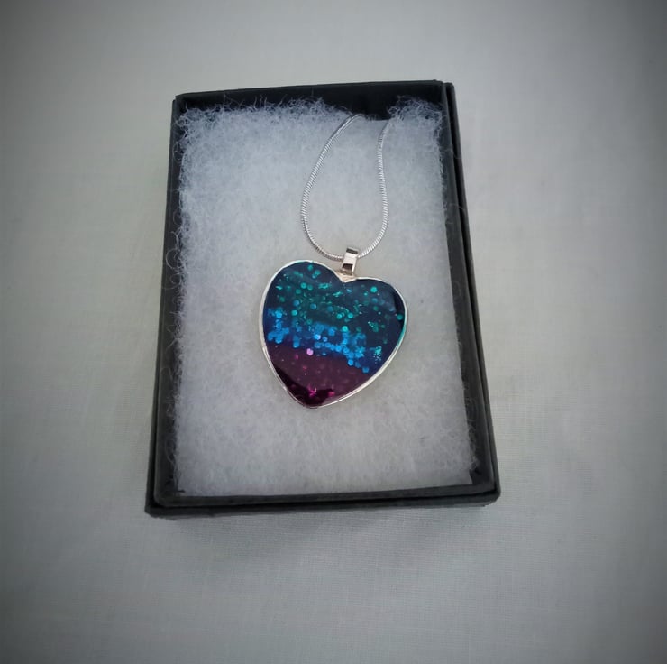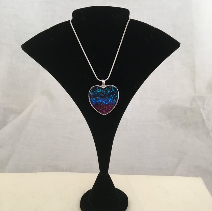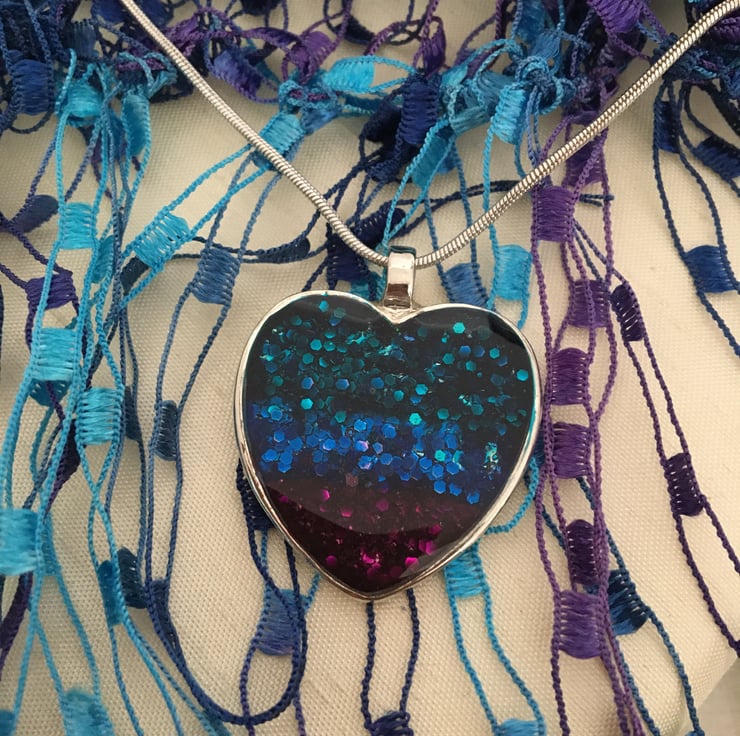 Vibrant handcrafted tri-coloured heart pendant in a quality silver tone setting.