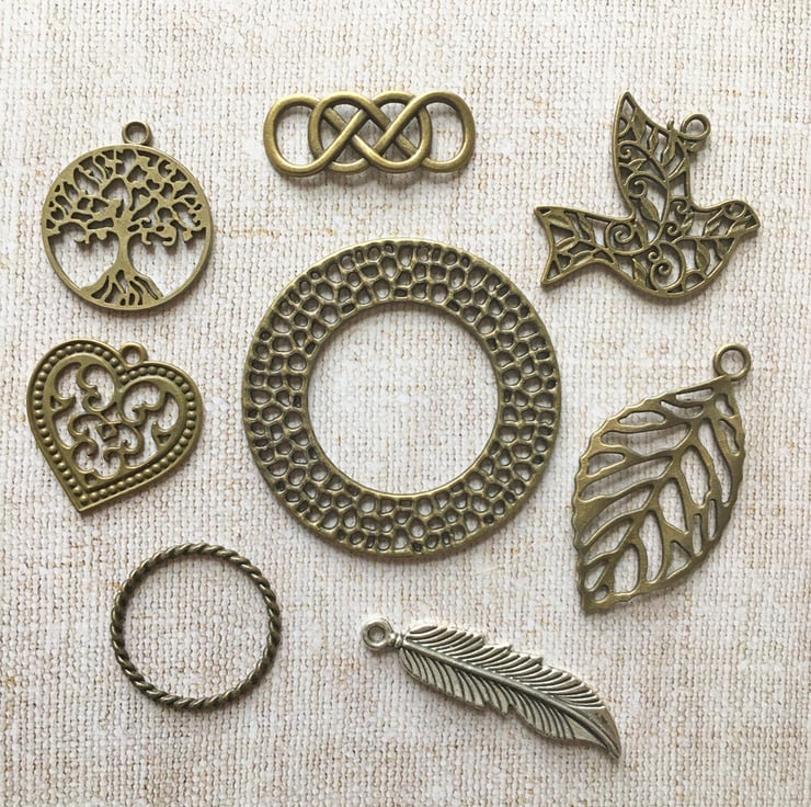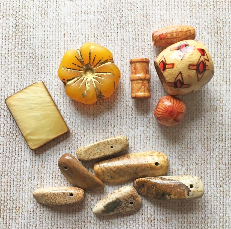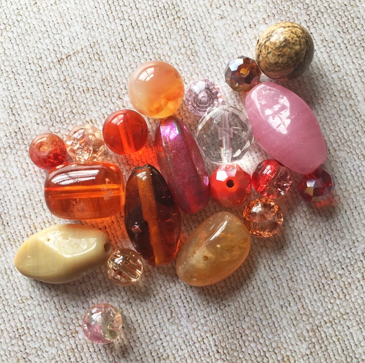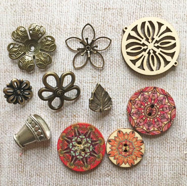 I've raided my supplies and put together a colourful, bargain bundle of items including a selection of papers (painted and origami), vintage playing cards, postage stamps, charms, beads, shells, buttons, bead caps, fabric, trims and more.