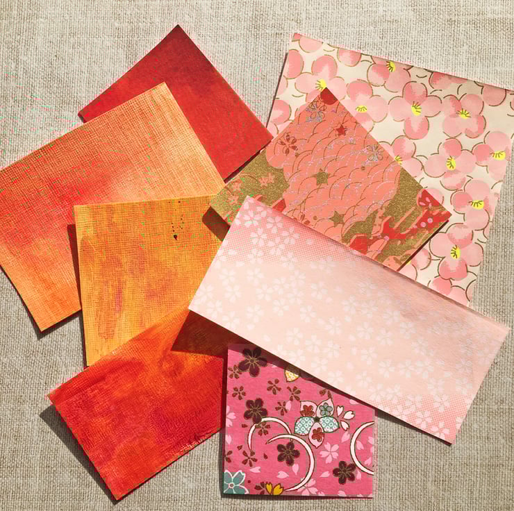 A range of crafting materials in shades of pink and peach to help and inspire you on your next creative project. Whether that's a mixed media artwork or some handmade cards, you'll have plenty of materials to get you started.
