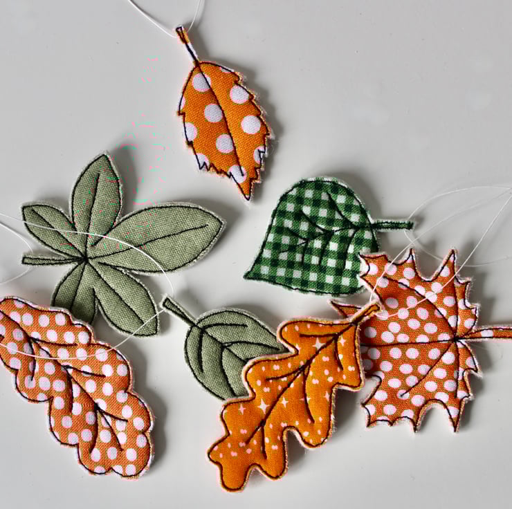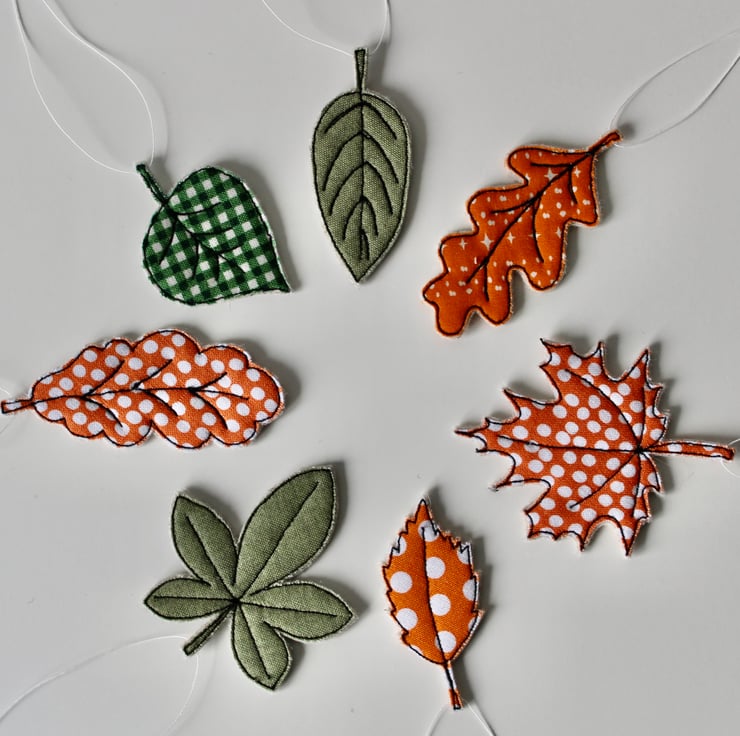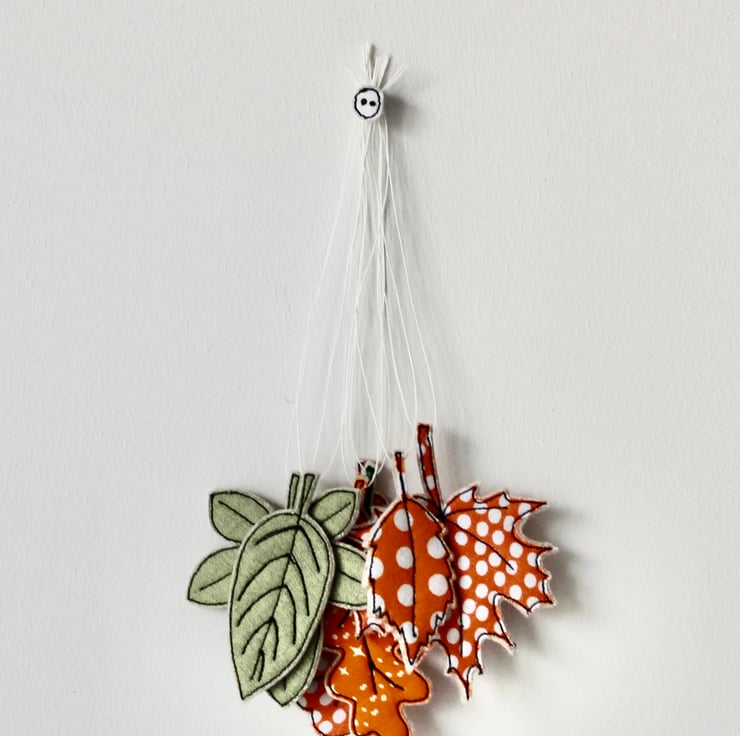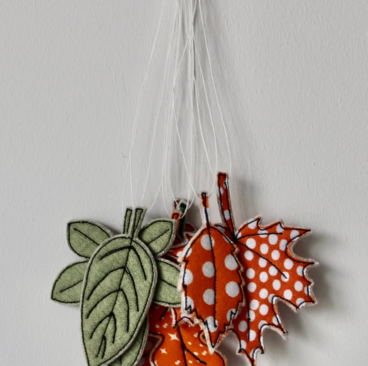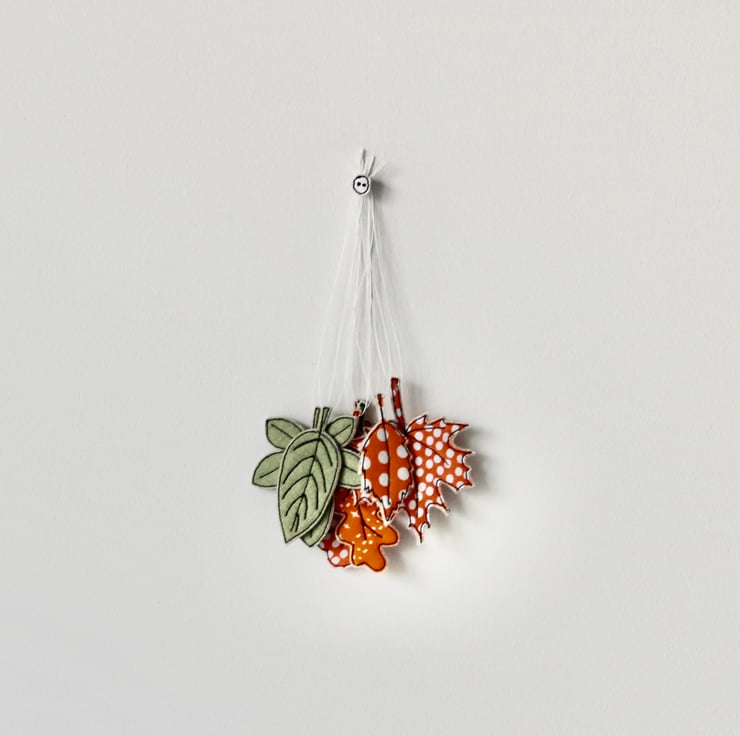 Each of the seven leaves is sewn using a combination of 100% wool felt, cotton cloth and free hand machine embroidery; multiple layers of cloth are sewn together and cut out by hand using very sharp scissors.