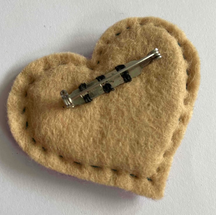 Heart measures c. 65mm with a c. 40mm silver plated brooch pin on the beige felt back.