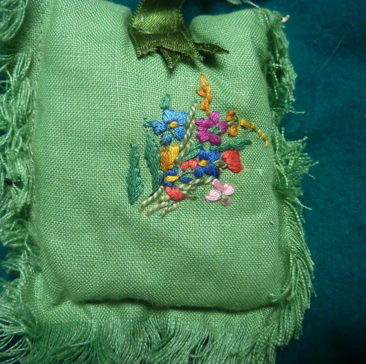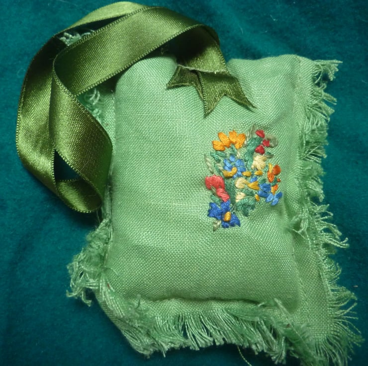Silk Flower Vintage Hand Embroidered Linen Hanging English Lavender Bag