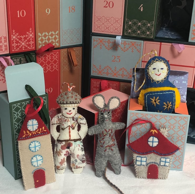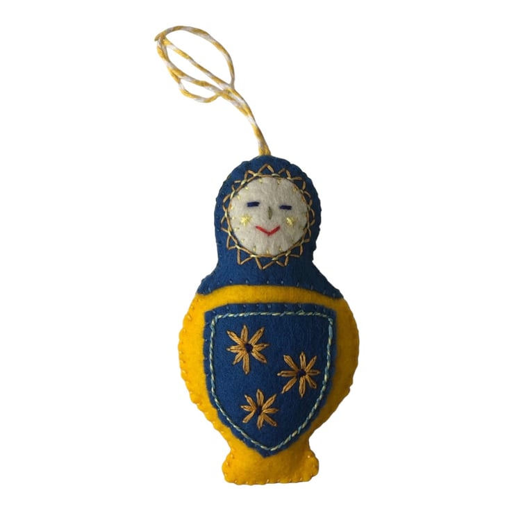 Handmade in the Egg these 100% wool felt hanging Christmas decoration are on sale in support of the Ukrainian people.