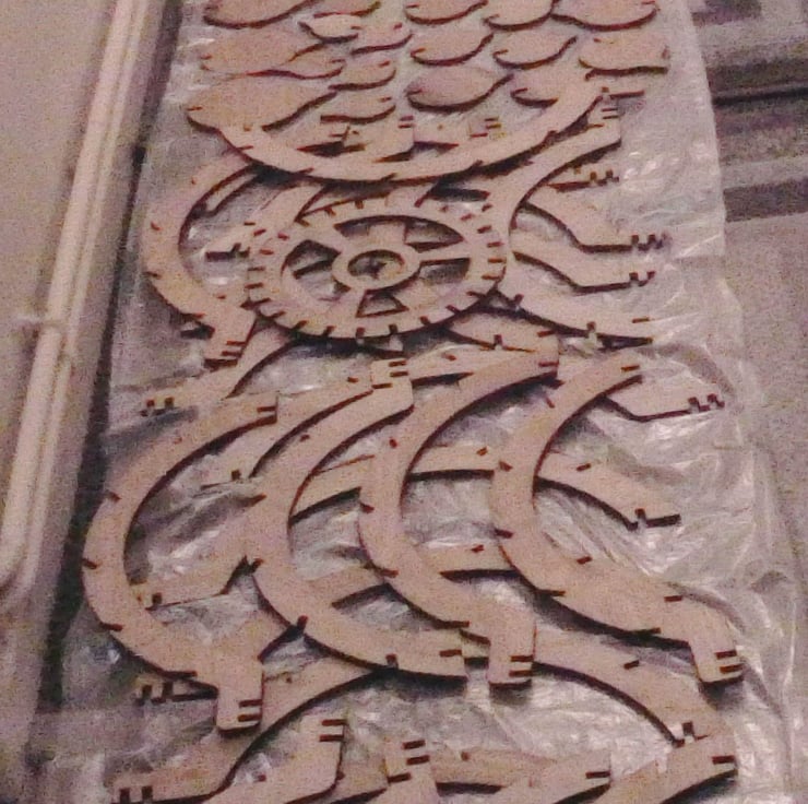 Consisting of over 130 individual pieces, each handmade, stained, assembled and tested.