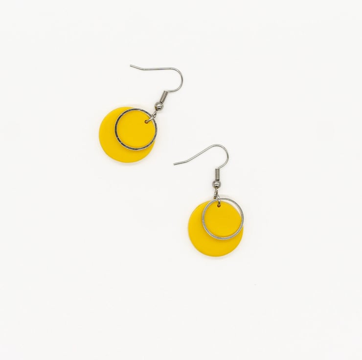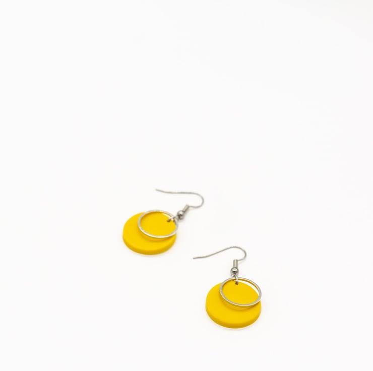 These circle statement pieces are super simple yet extremely impactful. Silver hoop on the bright yellow pieces gives earrings their delicate look and adds interest to the jewellery. This style can be matched either with your everyday outfits for more complete look or as little addition for your fanciest evening wear.