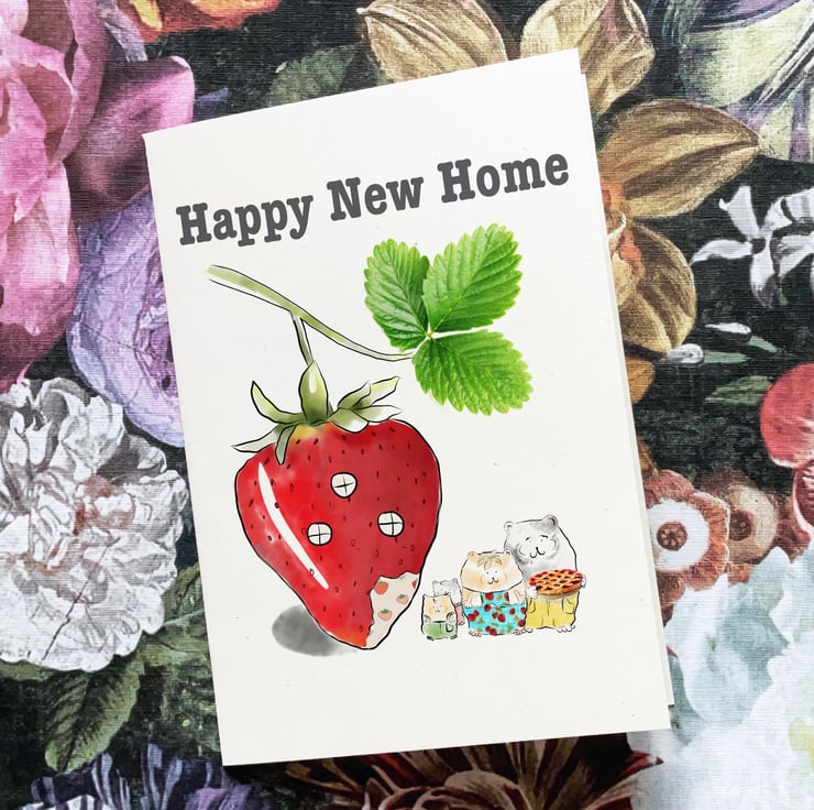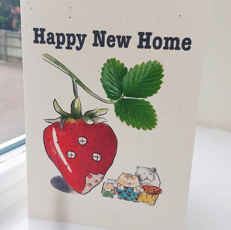 Featuring an hand-drawn illustration of the adorable hamster family and their new strawberry home, this card is ready to add cuteness and a splash of humour to your loved ones’ new home celebration.