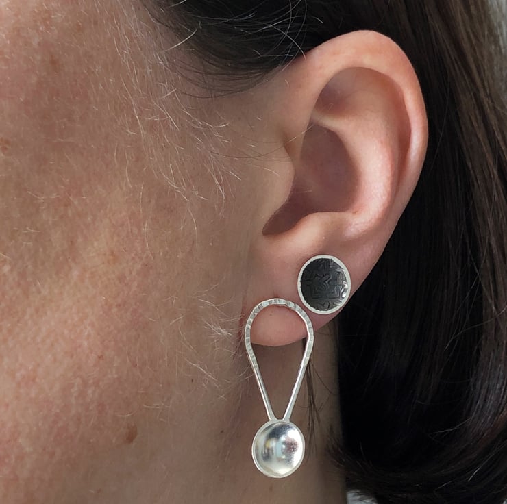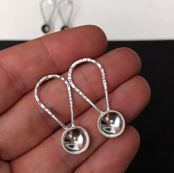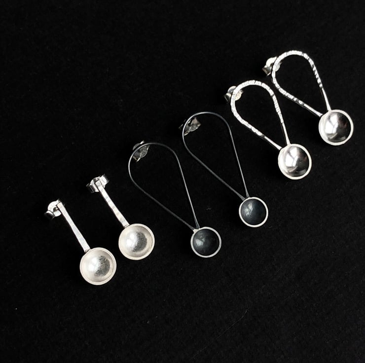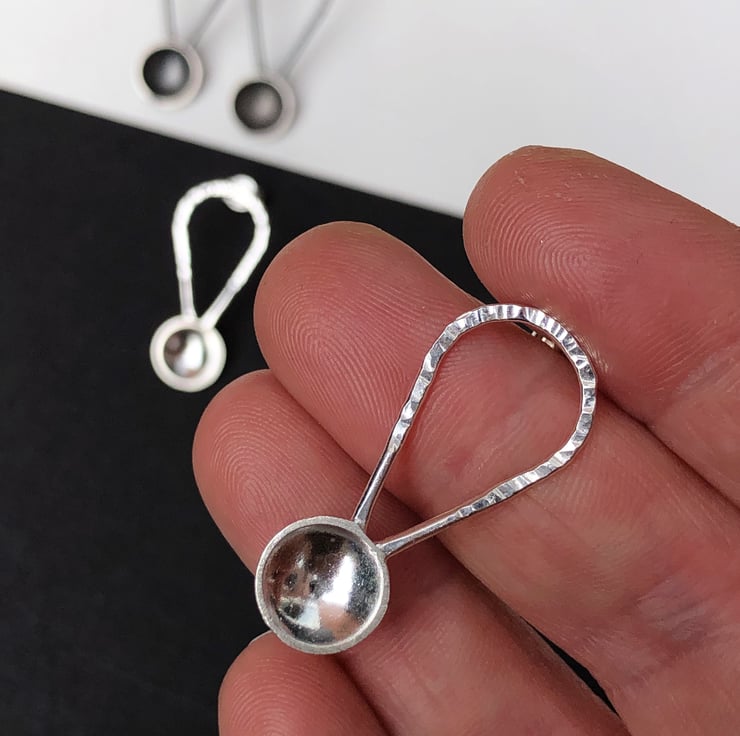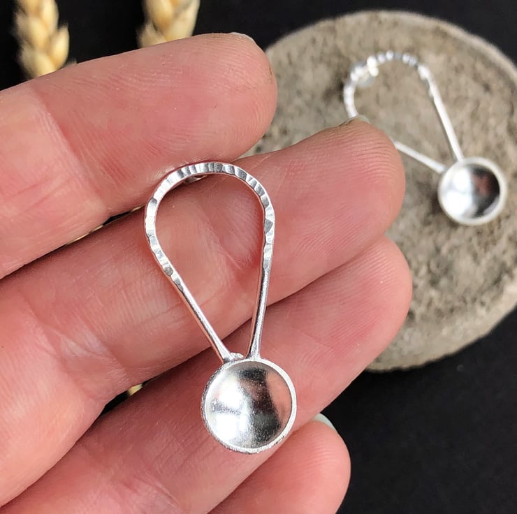 My spoon earrings and abstract spoon earrings are all inspired by my collection of spoons and some of my larger work. These are cast from a master made with sheet and wire, they are then hammered individually.