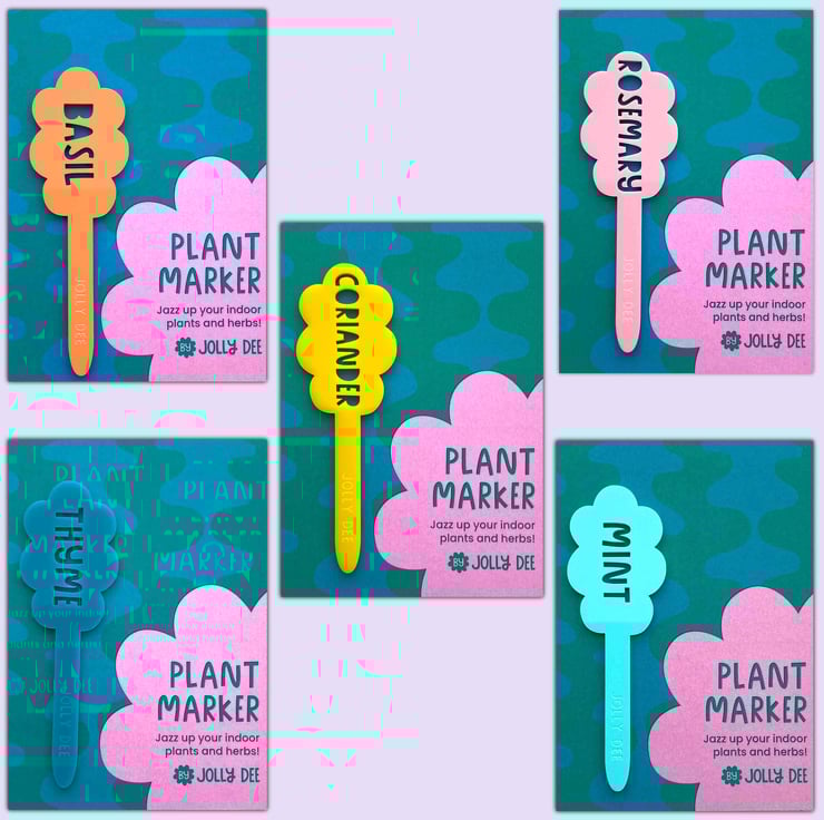 Jazz up your herb garden with a set of 5 Jolly Dee herb markers if you’re a plant mum or plant lover! This set has the five most popular herbs my plant loving customers use: Rosemary, Basil, Thyme, Coriander, and Mint! Check the shop for more herbs you can add to the collection.