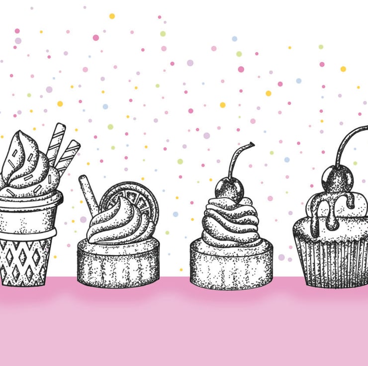 Illustration print - 'Pretty Little Cupcakes' is a A4 (21 x 29.7cm) colour print of a pen illustration, featuring a selection of gorgeous decorative cakes. I finished this piece off on the computer to add a splash of colour.