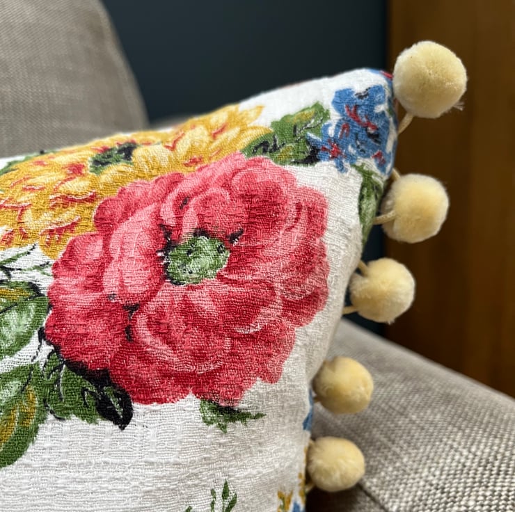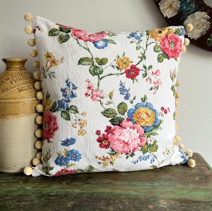 Beautiful one of a kind rose cushion cover made from reclaimed vintage floral cotton. This cotton was previously part of a chair cover. The colours are still really fresh.