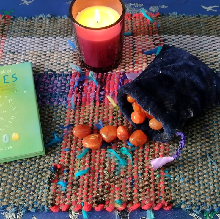 This can be used as an altar cloth to set up your special pieces for meditation and reflection. It can work as a cloth for Tarot spreads and readings, or for rune casts. It's small enough to use on a side table to display a few photos and sit a lamp on.
