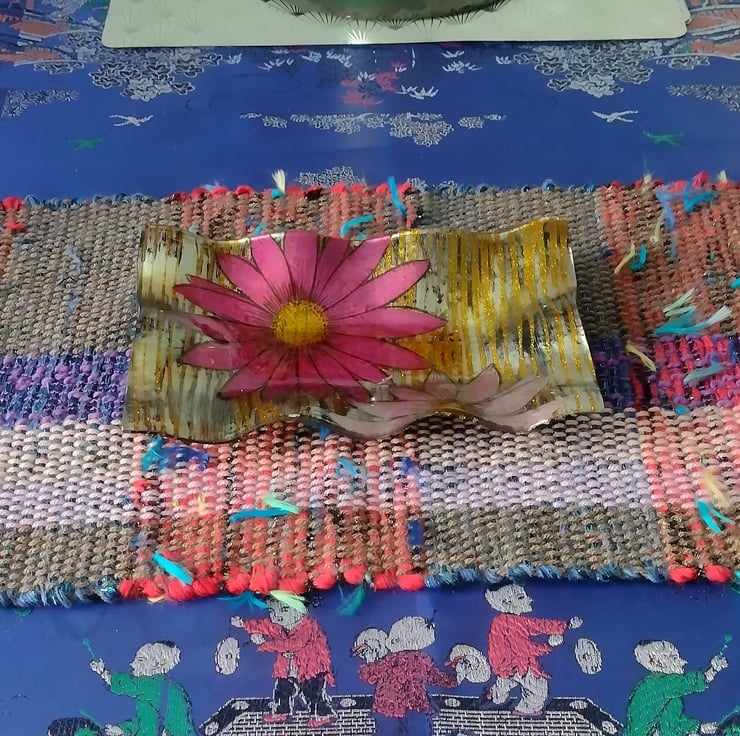 I've put a line of machine stitching running round the outer edge to hold the woven ends more securely for hand washing the piece.