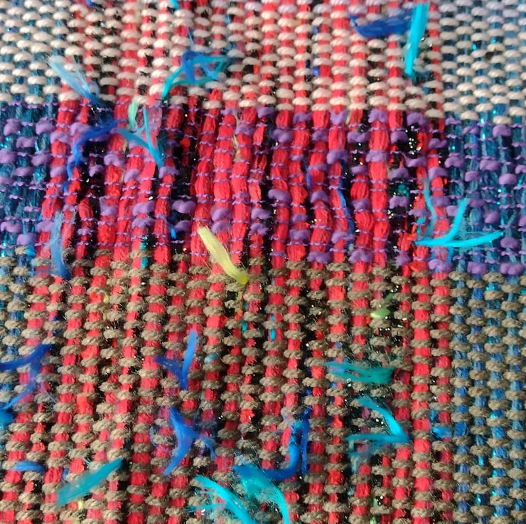 It will add a splash of colour wherever you decide to use it. The yarn used is a mix of cotton for the warp and mixed acrylic across the weft.