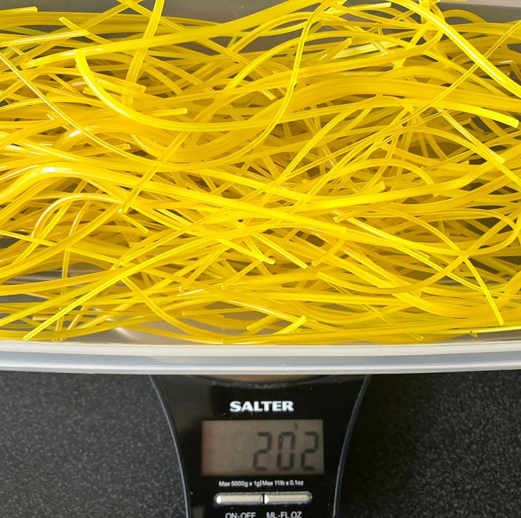 Yellow Bullseye 90coe glass Vitrigraph stringers. For context box measures 28x10cm.