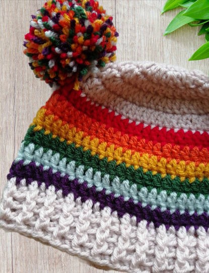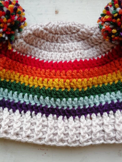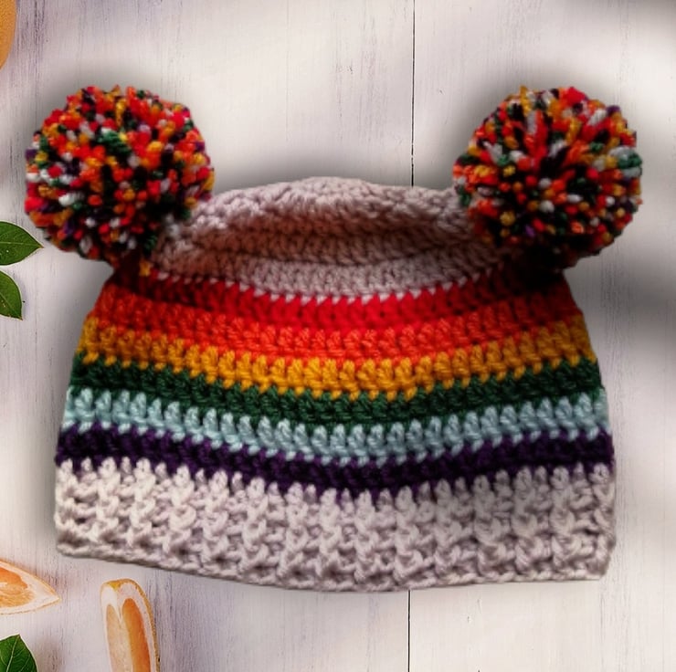 Perfect gift for a rainbow baby. This hat is hand crocheted in Scotland in soft acrylic. Vegan friendly.